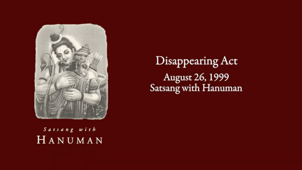 Play Video In this 1998 satsang retreat, Hanuman engages with one retreat participant who is worried that she is not following Papaji’s instructions – to recognize that this lifetime is precious and should be spent serving others. Hanuman assures her that by resting, reading and refreshing herself, she is doing what serves her and the…
